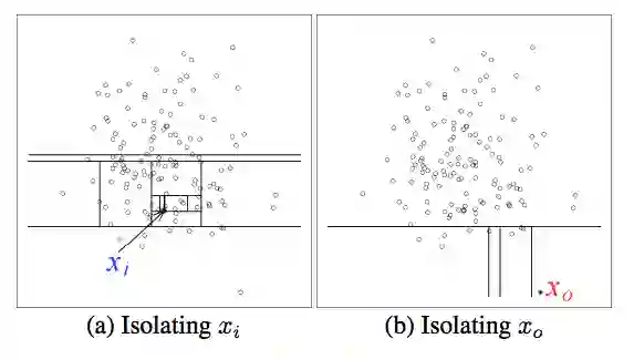 如果要区分(a)图中的点,这个点显然是个normal数据,需要非常多的切割平面,而(b)中的anormal数据需要的切割面就比较少。
