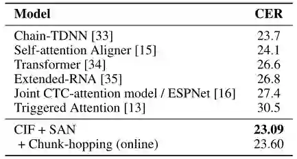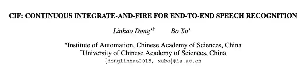 为解决经典的注意力语音识别模型不支持在线识别、边界定位等问题,中科院自动化所董林昊博士、徐波研究员将脉冲神经网络中的整合发放思想进行连续化,提出一种低复杂度并具有单调一致性的序列转换机制——连续整合发放(Continuous Integrate-and-Fire,CIF)。基于CIF的模型不仅有效地支持了在线识别、边界定位及声学 Embedding 提取,而且在两个中文基准语音识别集(HKUST、AISHELL-2)上创造了SOTA的性能。相关成果被ICASSP 2020录用为Oral论文。