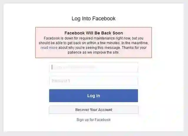 “帐户暂时不可用”是 Facebook 用户在登陆时收到的消息提醒。 “由于网站问题,您的帐户目前无法使用。我们将尽快解决此问题。请在几分钟后重试。”但事实上 Facebook 挂了整个白天,截止到现在 (美国当地时间下午 8 点)还没有恢复。
