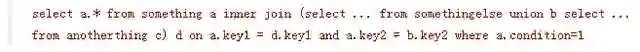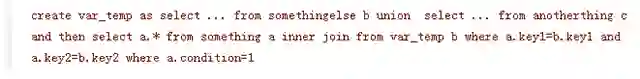 你*好创建一个临时列表,然后加入临时表不询问Hive如何智能的处理子查询。也就是说不要这么做。
