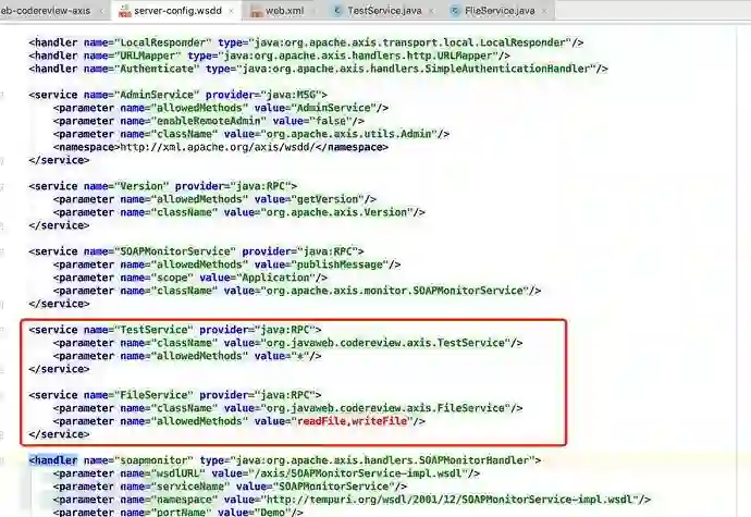 配置server-config.wsdd文件注册Web Service服务类和方法: