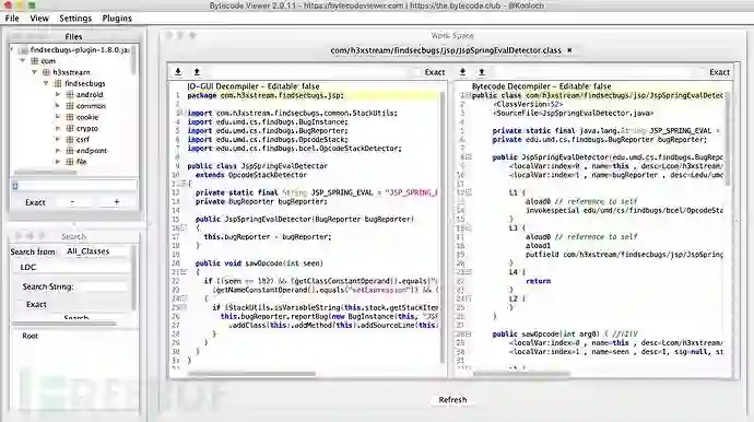 FernFlower提供了GUI版本Bytecode-Viewer,Bytecode-Viewer提供了直接反编译的class、jar、zip、apk、dex功能,直接拖拽jar就可以直接对整个jar进行反编译了。