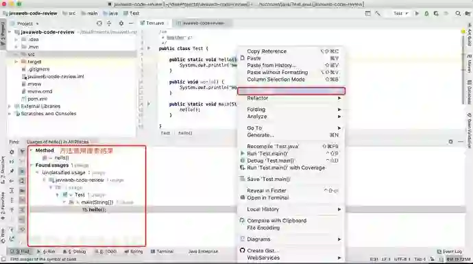 选择类或者方法名→右键→Find Useages或者使用快捷键⌥F7