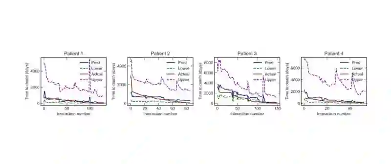 这篇论文介绍了 Survival-CRPS 模型,该方法是 CRPS 在预测事件发生时间上的推广,并且提出了右删失数据和间隔删失数据两个变种。为了全面评价预测分布的锐利程度,研究人员提出了 Survival-AUPRC 评价标准,计算方法类似于准确度 - 召回曲线下的面积。通过构建一个循环神经网络,将提出的方法应用于死亡预测。研究使用了电子医疗记录(Electronic Health Record, EHR)数据库,其中包含数百万个患者的医疗数据。实验结果显示,通过 Survival-CRPS 目标函数训练的模型的表现相比于最大似然法有显著提高。