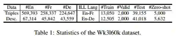 文章实验数据来自DBPedia中抽取的子集WK3160k,由英法德三语构成,其中每种语言数据中包含了54k-65k规模的实体