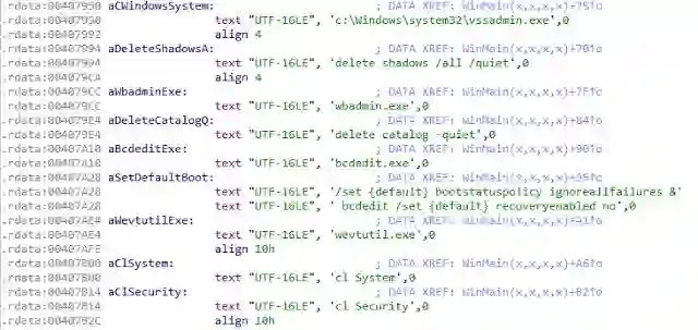 清除所有可用的恢复方法表明该攻击者无意让机器可以使用。该恶意软件的目的是破坏主机,让计算机系统停运,并擦除远程数据。