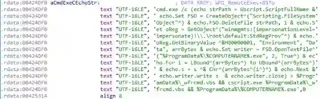 网络传播使用PsExec和WMI来执行(通过Win32_Process类)。这是远程执行的代码: