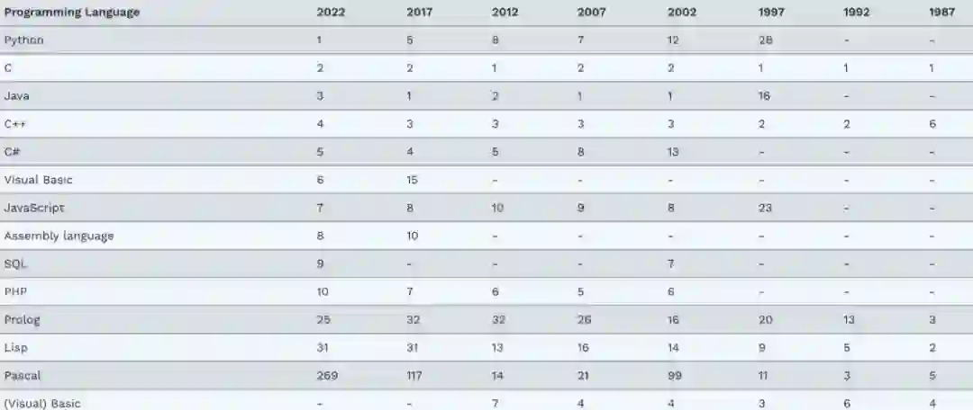 详细榜单信息可参考 TIOBE 官网:https://www.tiobe.com/tiobe-index
