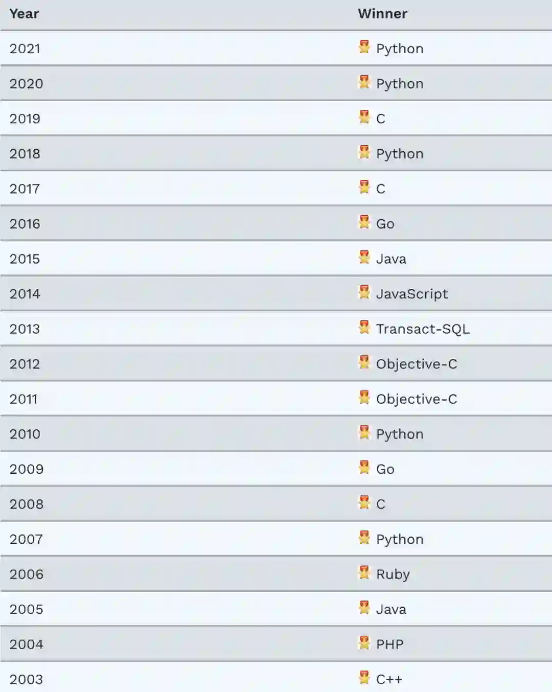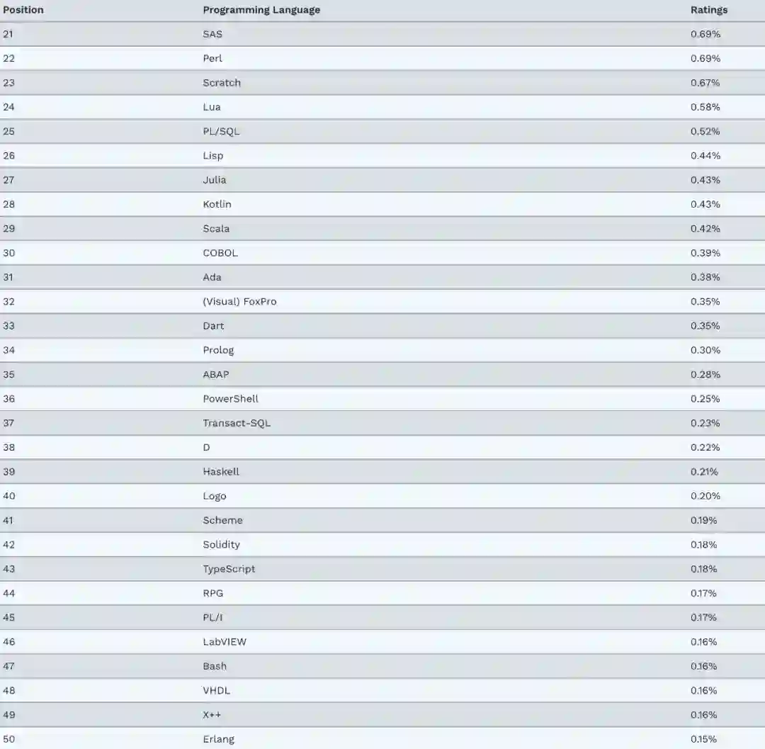 这个排行榜可以用来考察你的编程技能是否与时俱进,也可以在开发新系统时作为一个语言选择依据。