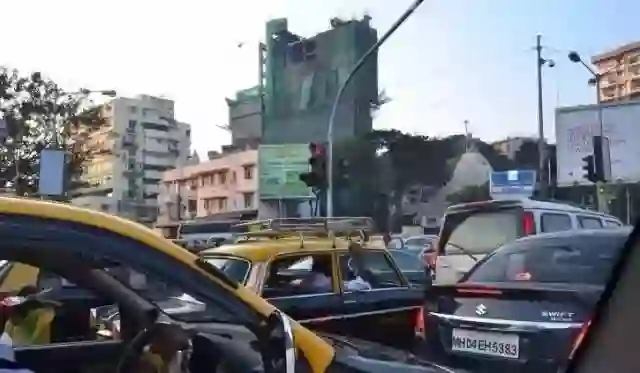 孟买路口等红灯时的车距。隔壁的车触手可及。