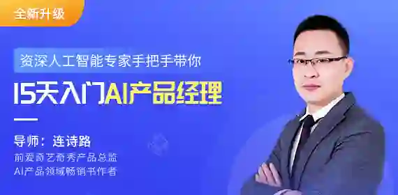 为此,人人都是产品经理旗下的起点学院,特别邀请到了在智能产品领域深耕多年、前爱奇艺奇秀产品总监@连诗路 老师,共同打造了《15天入门AI产品经理》课程,教你如何系统入门AI产品经理;帮你在AI时代先人一步,少走弯路。