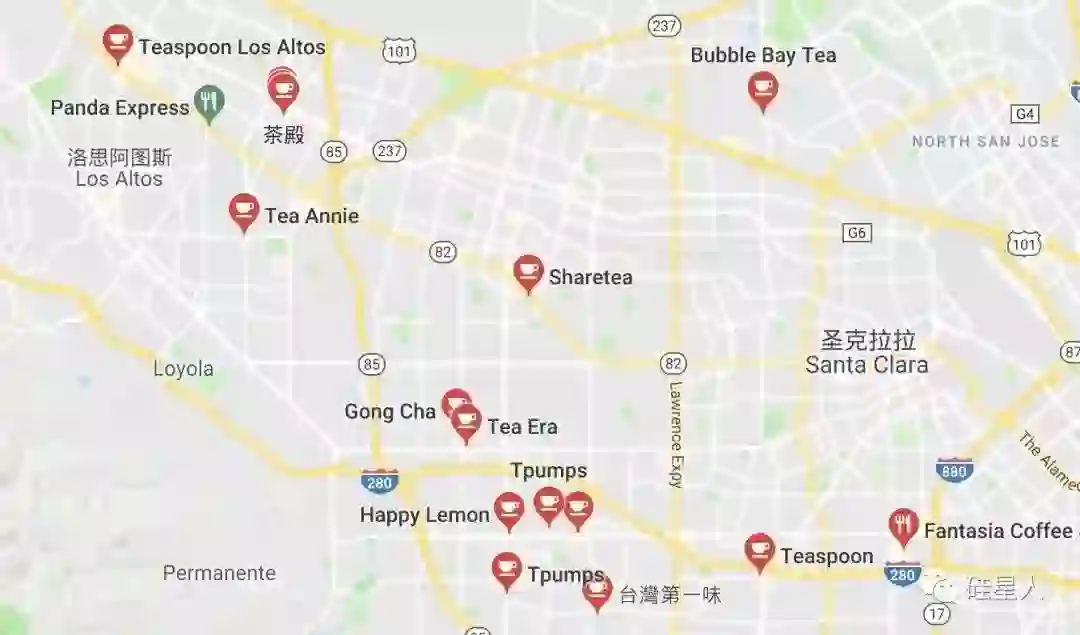 当你离开湾区往北走,往东走,出了这个地界,奶茶店 biu 的一下就消失了。回到湾区的土地上,奶茶店 biu 的一下就又从地里钻出来了。