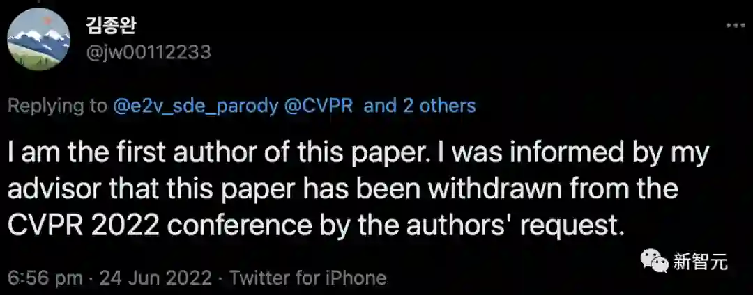 随后,一作也站了出来。在道歉的同时,表示此文已经由导师通知自己,以「作者要求」为由从本届CVPR撤稿。