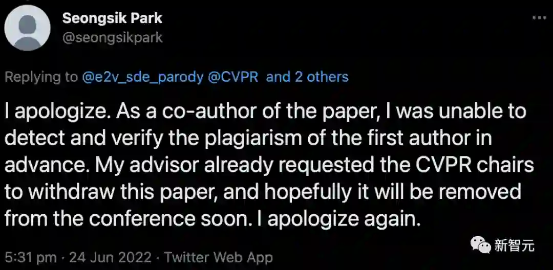 不过,在承认论文抄袭,且导师已经指示请求CVPR撤稿的情况下,甩锅给一作,只承认自己「没能发现并确认第一作者的抄袭」。