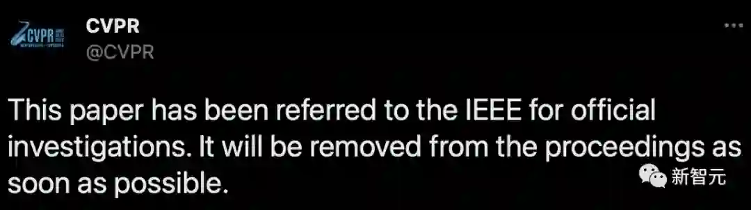 不到17个小时之后,CVPR官方就做出了回应,表示已经将论文提交给IEEE进行正式调查,并且会尽快从会议记录中将其删除。