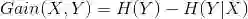 我们通过看这个数学表达式不难看出信息增益所表达的意思。被减数是信息熵,也就是在没人给我们通风报信的时候判断结果的难度;减数是条件信息熵,也就是当我们知道了一个条件后,判断结果的难度。信息增益这个变量表达的意思就是条件x对判断结果减少了多少难度,即度量X对预测Y的能力的影响。