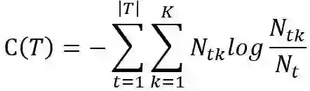 其中,t 是树 T 的叶结点,该叶结点有 Nt 个样本,其中k类的样本点有 Ntk 个,k=1,2,…,K。