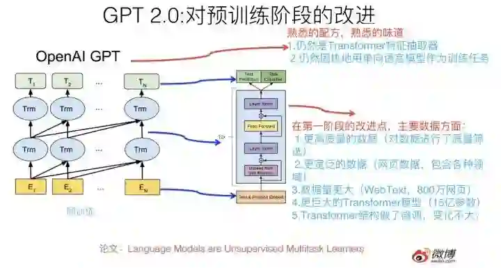 那么GPT 2.0本质上是怎么做的呢?最大的改进是什么?其实几句话就能说明白,就是上图写的内容。