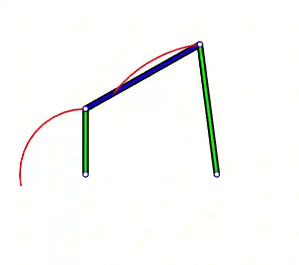 最终设计的平面杆组,由主动件和一些连接组构成。这些连接组应当具备两个自由端点,且连接组上一点在运动中始终是这两个自由端点的中点,即 。