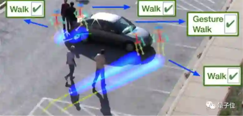 他们运用一个端到端的多任务学习系统,从画面中识别人类行为和TA与周围环境的互动情况,然后根据这些信息,预测出这名行人未来的路径和行为。
