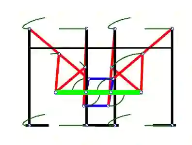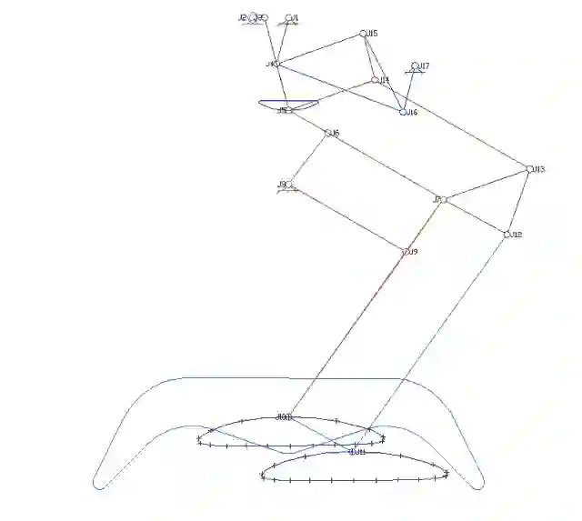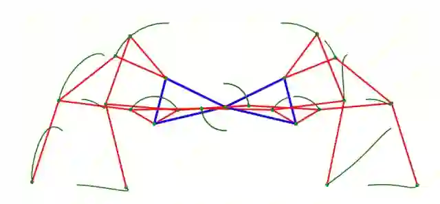 是由Jansen发明的,用于模拟平稳行走,Jansen利用这种连杆制造了著名的海滩巨兽,这种连杆兼具美学价值和技术优势,通过简单的旋转输入就可模仿生物行走运动,这种连杆已经用于行走机器人和步态分析。