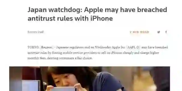 1、日本监管机构:苹果或违反反垄断规定
