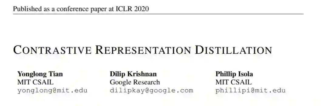 后台回复“CRD” 就可以获取《【MIT-伯克利-ICLR2020】对比表示蒸馏,Contrastive Representation Distillation》论文专知下载链接