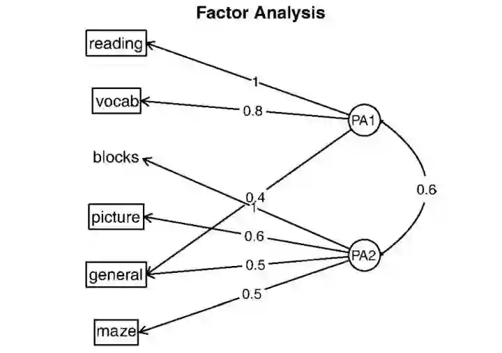 因子分析 ( EFA ) 是指, 通过发掘隐藏在数据下的一组较少的、更为基本的无法观测的变量,来解释一组可观测变量的相关性。