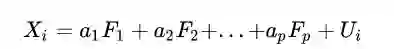 这里的Fj(j=1,2,....p) 就是我们说的因子,Ui 则指的是第i个观测变量独有的部分(无法被因子解释)。