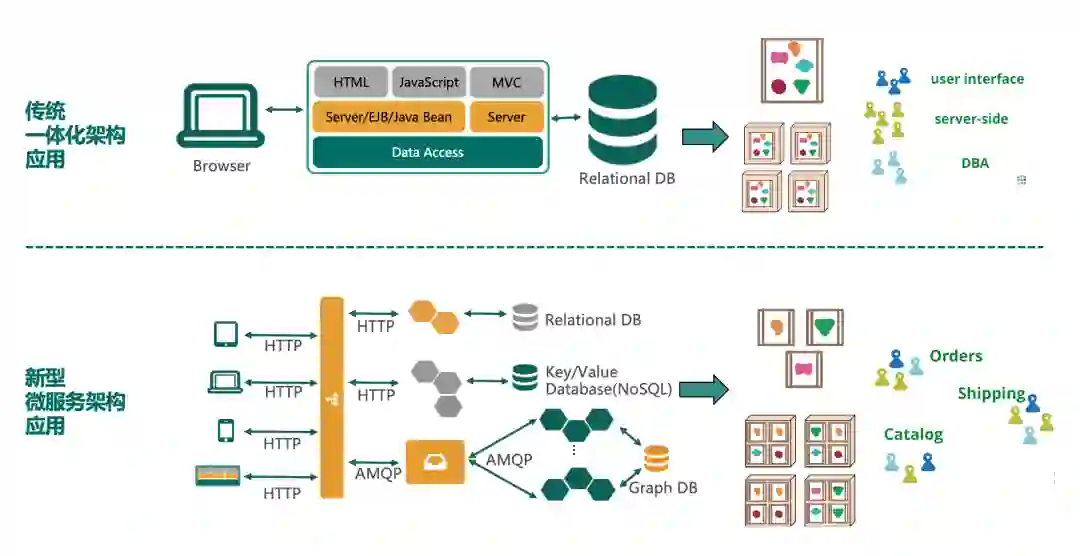 架构方面,传统的一体化架构应用在更新、升级或者重启时往往牵一发而动全身,而且构建新应用时难以复用已有功能,需要重复“造轮子”。分布式架构、微服务架构的出现可以很大程度上改善这两个问题。