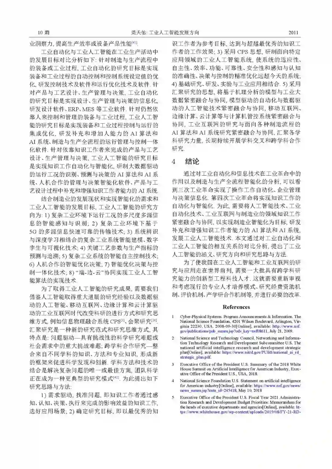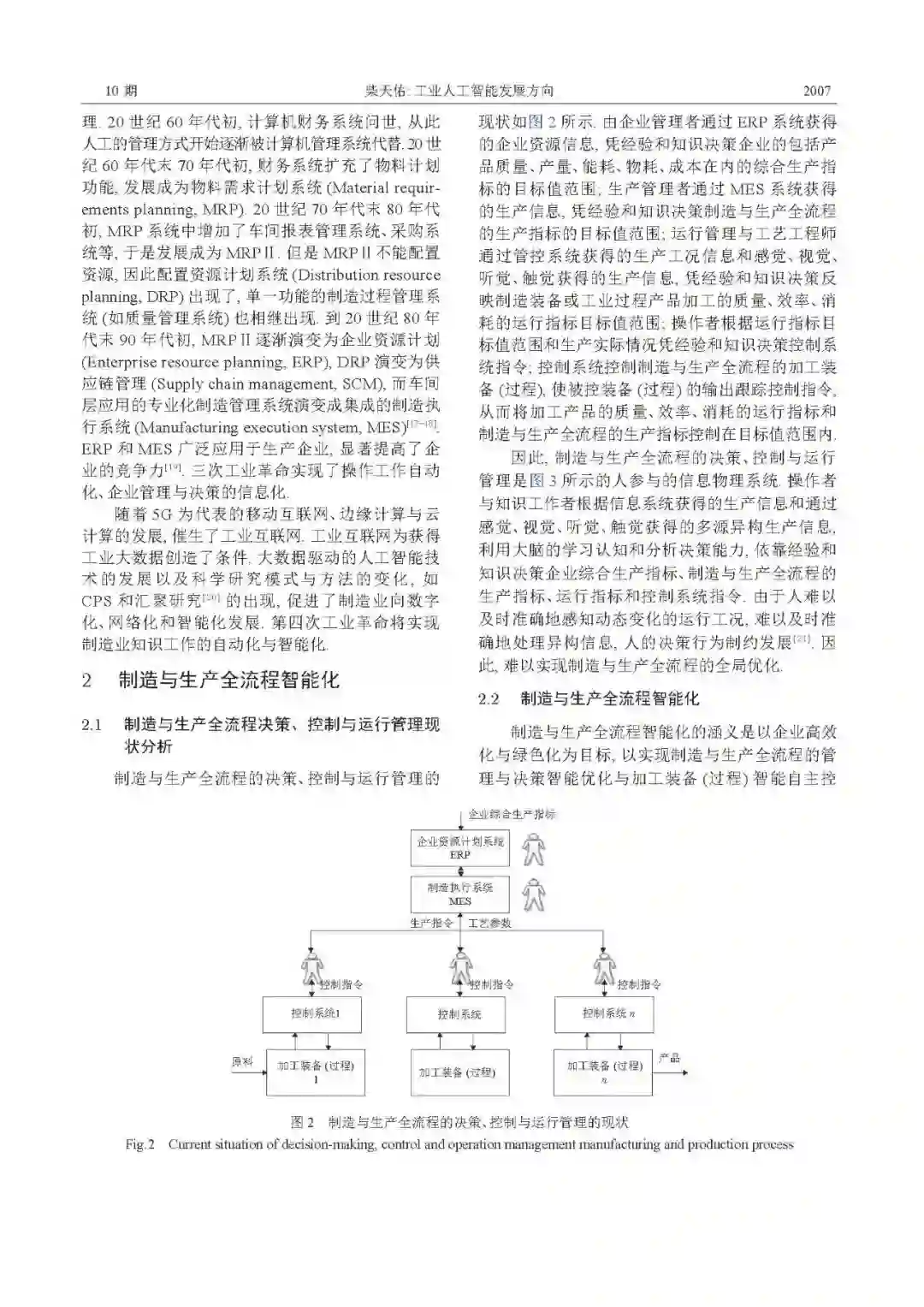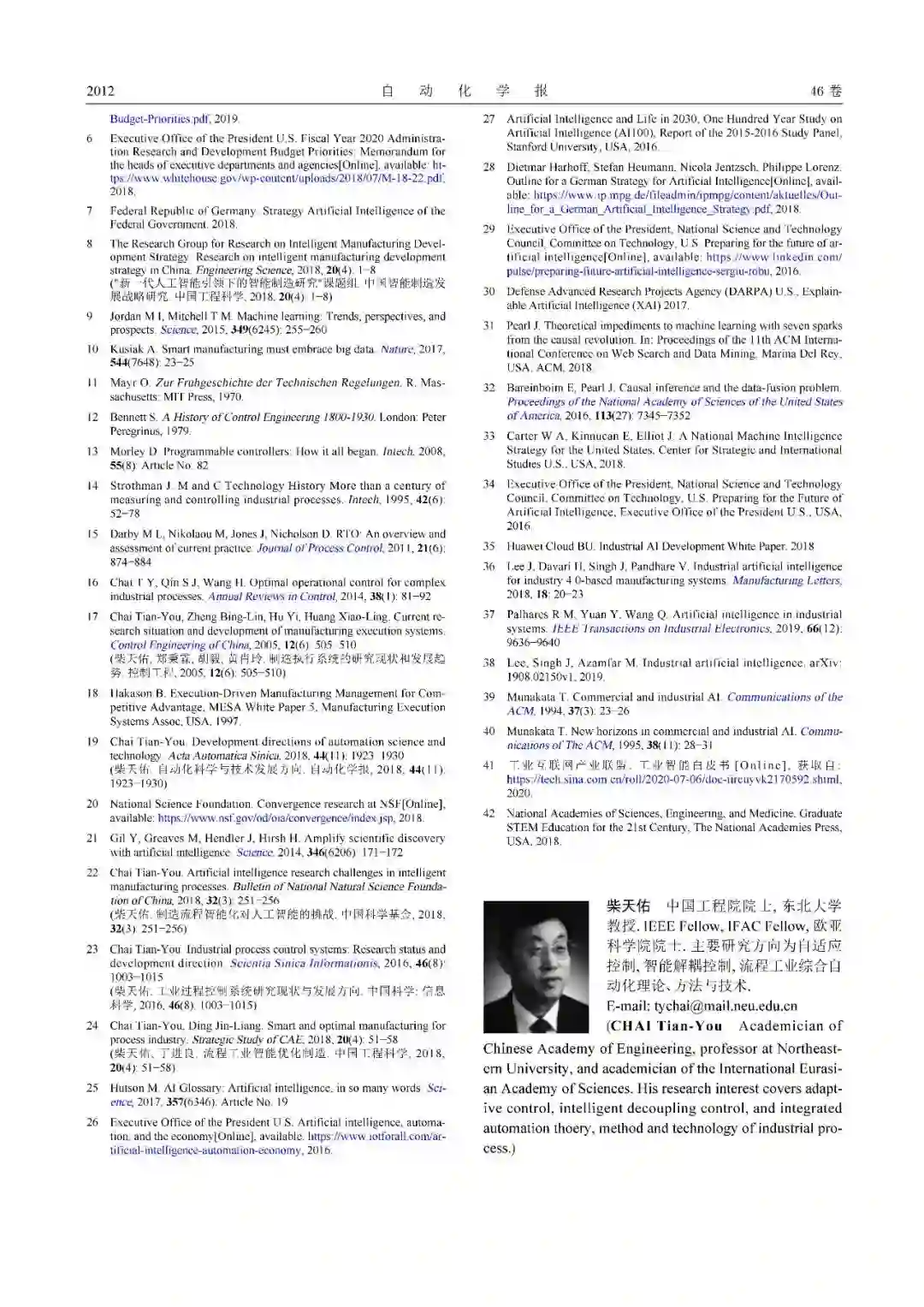 本文结合工业自动化和信息技术在工业革命中的作用以及制造与生产全流程决策、控制以及运行管理的现状和智 能化发展方向的分析, 提出了发展工业人工智能的必要性. 通过对人工智能技术的涵义、发展简史和发展方向的分析以及自 动化与人工智能研究与应用的核心目标、实现方式、研究对象与研究方法等方面的对比分析, 提出了工业人工智能技术的涵 义. 通过对工业人工智能和工业自动化的研究对象与研究目标对比分析, 提出了工业人工智能的研究方向和研究思路与方法。