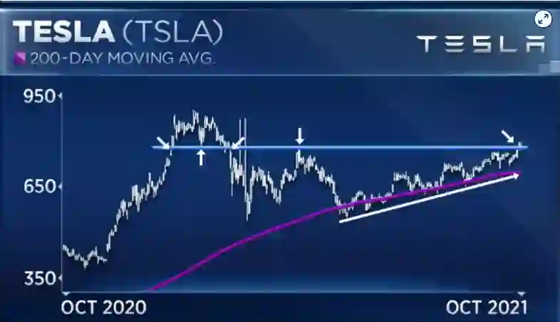 从2020年10月到2021年10月的一年中,特斯拉股价从380美元一度最高突破900美元,涨幅惊人,这让特斯拉的估值了超过1000亿美元。