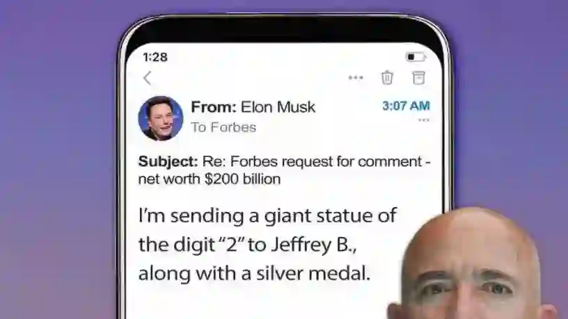 当时《福布斯》杂志请他就自己身价超过2000亿美元发表感言。他回复说,要送给贝索斯一个刻有数字「2」的纪念碑,外加一块银牌。