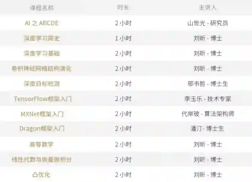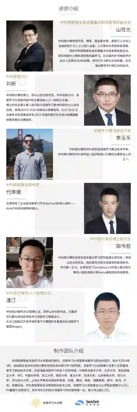 深度学习大讲堂,携手中科视拓、中科院计算所 VIPL 研究组,共同制作了这份诚意满满的深度学习视频课程,内容由浅入深,从理论到实践,覆盖了深度学习数学基础、人工智能基础概念、深度学习基础概念、深度学习基本理论、卷积神经网络、深度目标检测技术、TensorFlow、MXNet、Dragon 深度学习框架。
