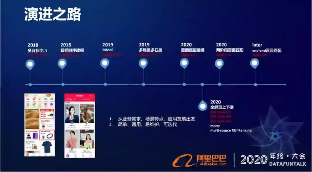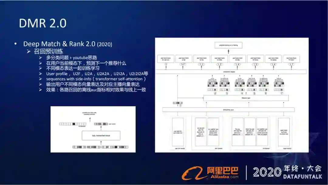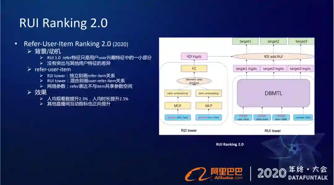 但这个两阶段的学习过程,链路上严重依赖于上下游关系的,所以不太好维护,通用性也比较差。所以我们现在也在做一个端到端的学习模型,直接在端到端的时候去刻画这种召回匹配的关系。以上我们在淘宝直播这种列表式的信息流下做的一些优化的工作,主要围绕着多目标和召回匹配。