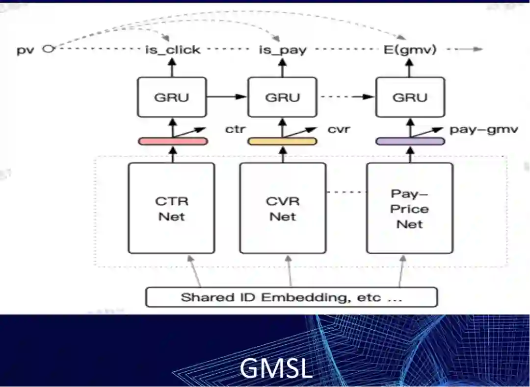 另外一类做法是做建模目标关系,像阿里巴巴提出的ESMM,然后还有lazada提出的这种GMSL的模型。这四个图简单给大家介绍一下。