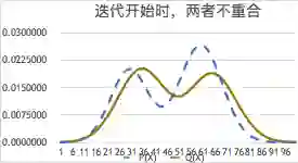 但是,使用EM算法时,往往在预测分布P(X|θ)和实际分布P(X)不重合就停下来了。流行的解释是:那叫局部收敛(其实就是收错了地方);因为大山周围有一些小山,出发点不对就上到小山顶上了。所以起始点很重要。于是有人专门研究如何通过测试找到较好的出发点,比如随机选多点测试看哪个好。