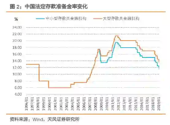 天风证券研报指出,2014年以来我国法定存款准备金率持续下降,目前平均法定存款准备金率约为11%。我国的法定存款准备金率远高于发达国家,即使在发展中国家中也处于比较高的水平。