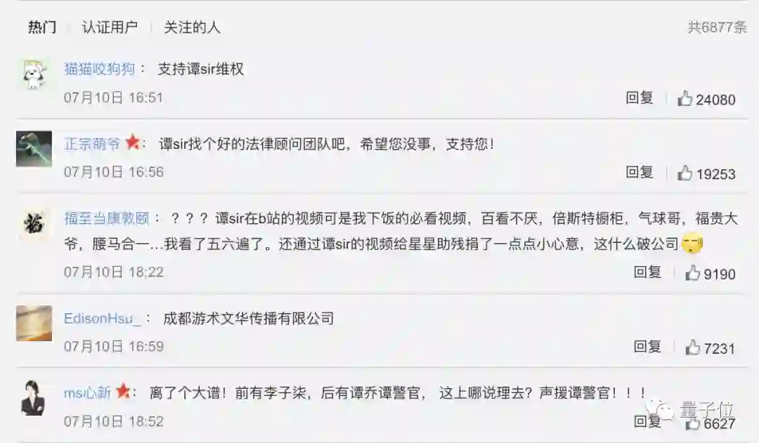消息一出引发各方关注,一众网友在谭乔微博下方留言表示,支持谭sir维权。