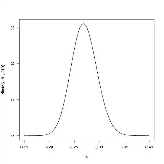 注意,分布的均值为α/(α+β) = 81/(81+219) = .270。