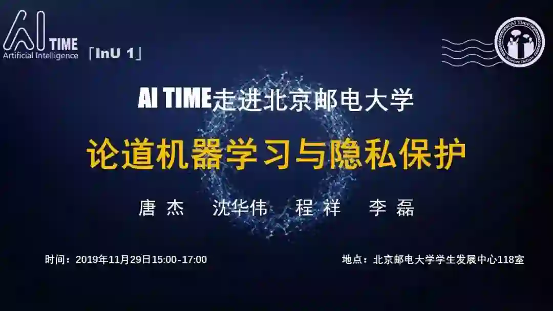 AI TIME走进北京邮电大学——“论道机器学习与隐私保护”,我们邀请到了该领域的四位重量级嘉宾-清华大学唐杰教授、中科院计算所沈华伟教授、北京邮电大学程祥副教授和字节跳动的李磊总监,大咖们如何就这个问题进行思辨,敬请期待!