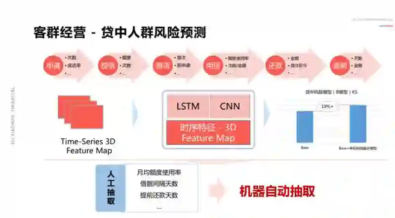 通过 LSTM,我们发现在贷后的风险区分能力上出现一个巨幅的提升,整个区分能力相对没有没用时序序列的能力提升了 20%,这其实是一个非常显著的变化,同时带来的好处是,机器能够帮人干很多事,能够自主的发现一些东西,这就是技术革新带来的价值。