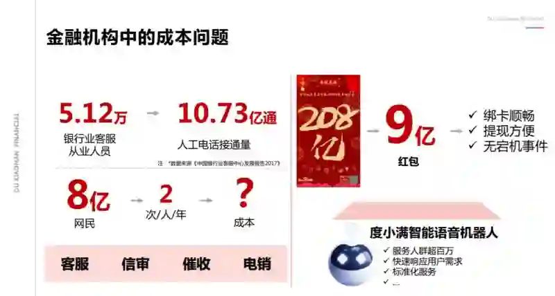 通过公开的统计数据,我们可以看到仅银行业的客服从业人员就有 5.12 万人,人工电话的接通量已经超过了 10 亿通,这还只是银行业,金融行业还有其他的企业和机构,而且客服人员只是提供一方面的服务。还有像信审、催收、电销人员,他们的工作都有一定的相似性,就是会存在大量的重复劳动,人力成本相对比较高。