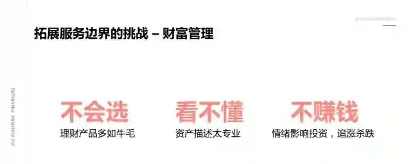 而前面说的很多是关于信贷的,那么在财富管理领域也是有一些实践可以和大家进行分享。