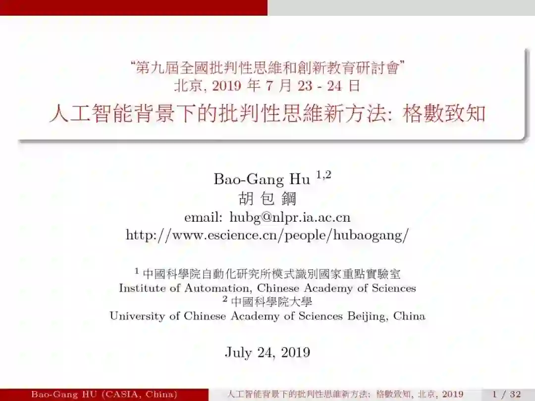 【导读】今天德先生很荣幸邀请到中科院自动化研究所胡包钢研究员分享他最近在“第九届全国批判性思维和创新教育研讨会”学术交流的讲稿。