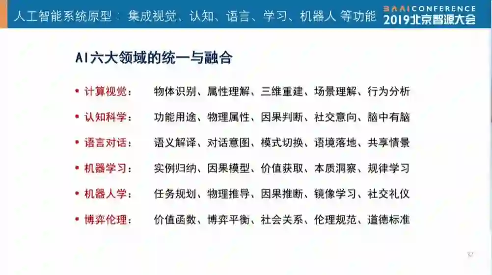 真正要做到以任务为中心,还要做一个统一的系统,融通六大领域,即计算机视觉、认知科学、语言对话、机器学习、机器人学习等。