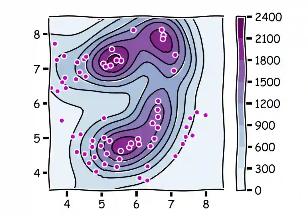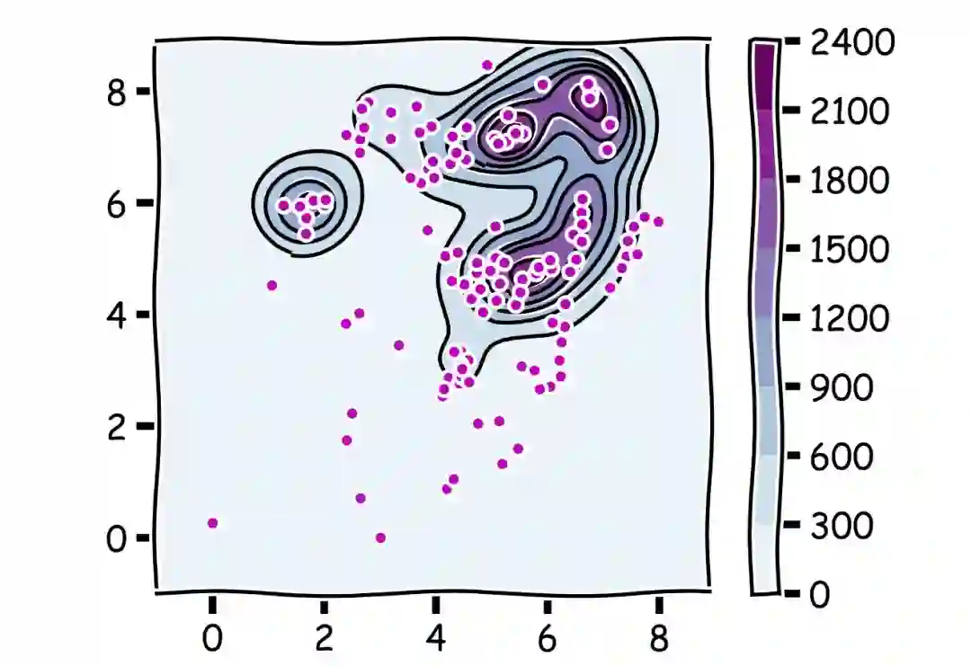 利用厕所热力数据反推得到的西湖景区人员密度分布图,上图中的紫红色的点代表厕所的位置
