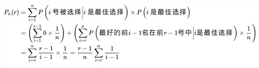 一共有 N 个选择,我们同样先看前 r 个选项,记录最佳的结果。接下来在第 k 个(我们选择的终点)之前,一旦我们遇到了比记录结果更好的,直接选择。但是如果我们没有找到更好的,那就回头,从过去的 N - k 个选项里面选择最好的。
