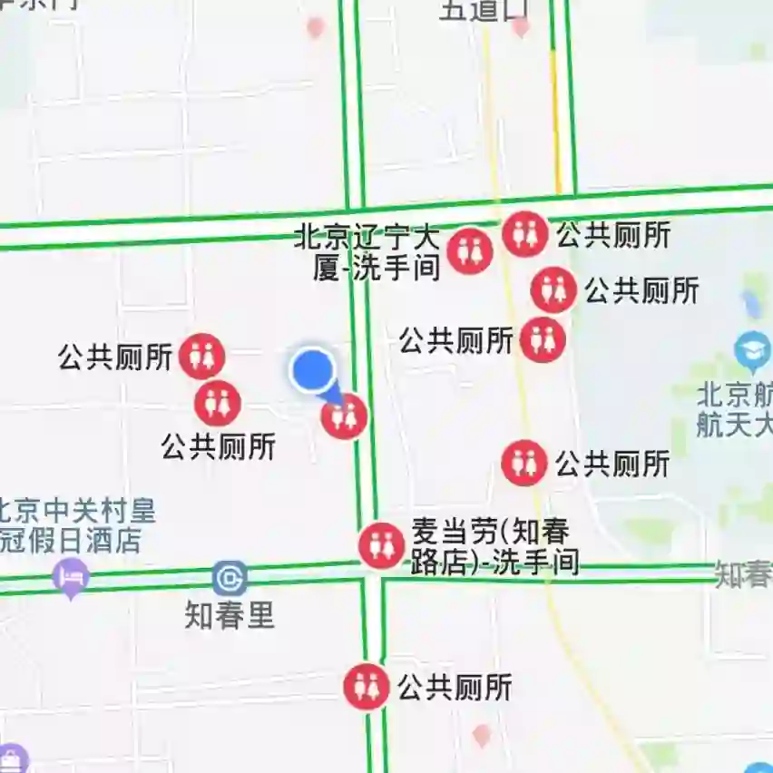 小编利用高德地图,搜索在中科院物理所附近的厕所