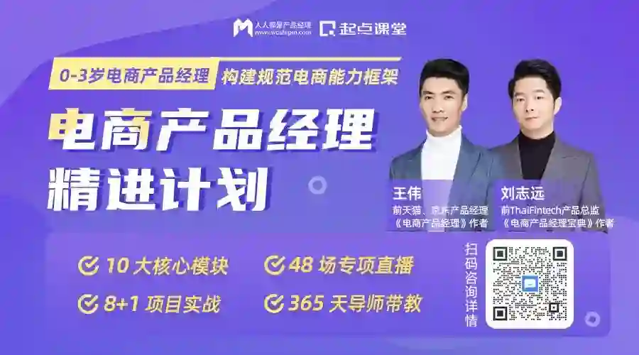为了帮助0-3岁电商产品经理更快成长,起点课堂联合《电商产品经理宝典》作者刘志远老师、前京东/天猫产品经理王伟老师,研发了业内唯一体系化的电商产品课程,帮助大家系统构建行业规范的电商产品能力体系!